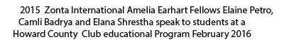 2015 Zonta International Amelia Earhart Fellows Elaine Petro, Camli Badrya, and Elena Shrestha